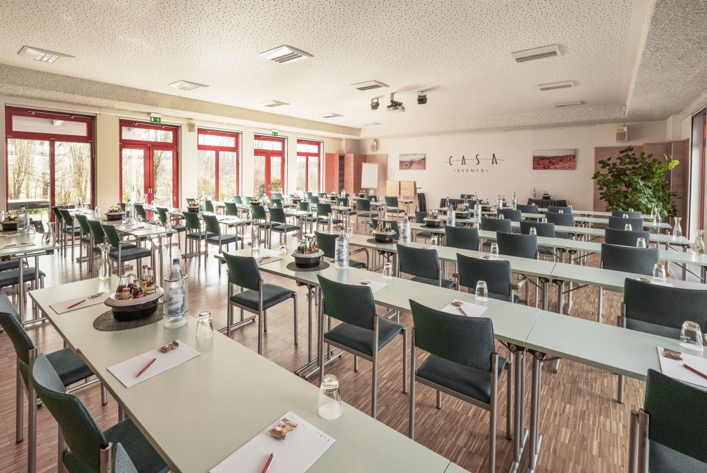 Der Tagungsraum Como ist für bis zu 20 Personen. Dieser kann als sehr großzügiger Meetingraum oder kleiner Konzerenzraum in verschiedenen Bestuhlungsvarianten genutzt werden.